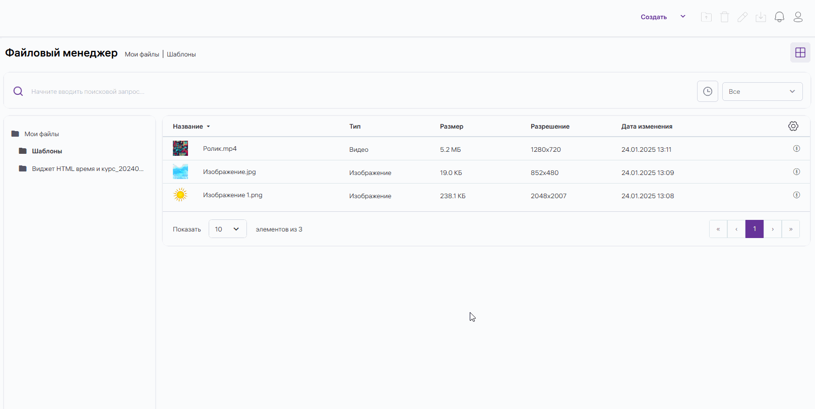 В Cubic Vision вы можете добавлять в систему новые файлы, используя файловый менеджер в разделе «Файлы». Также в других разделах вам будет доступно модальное окно файлового менеджера для добавления различного контента, например при работе с шаблонами, рекламными кампаниями и др. разделами. Рассмотрим оба варианта работы с файловым менеджером. ## Добавление файла в разделе «Файлы»