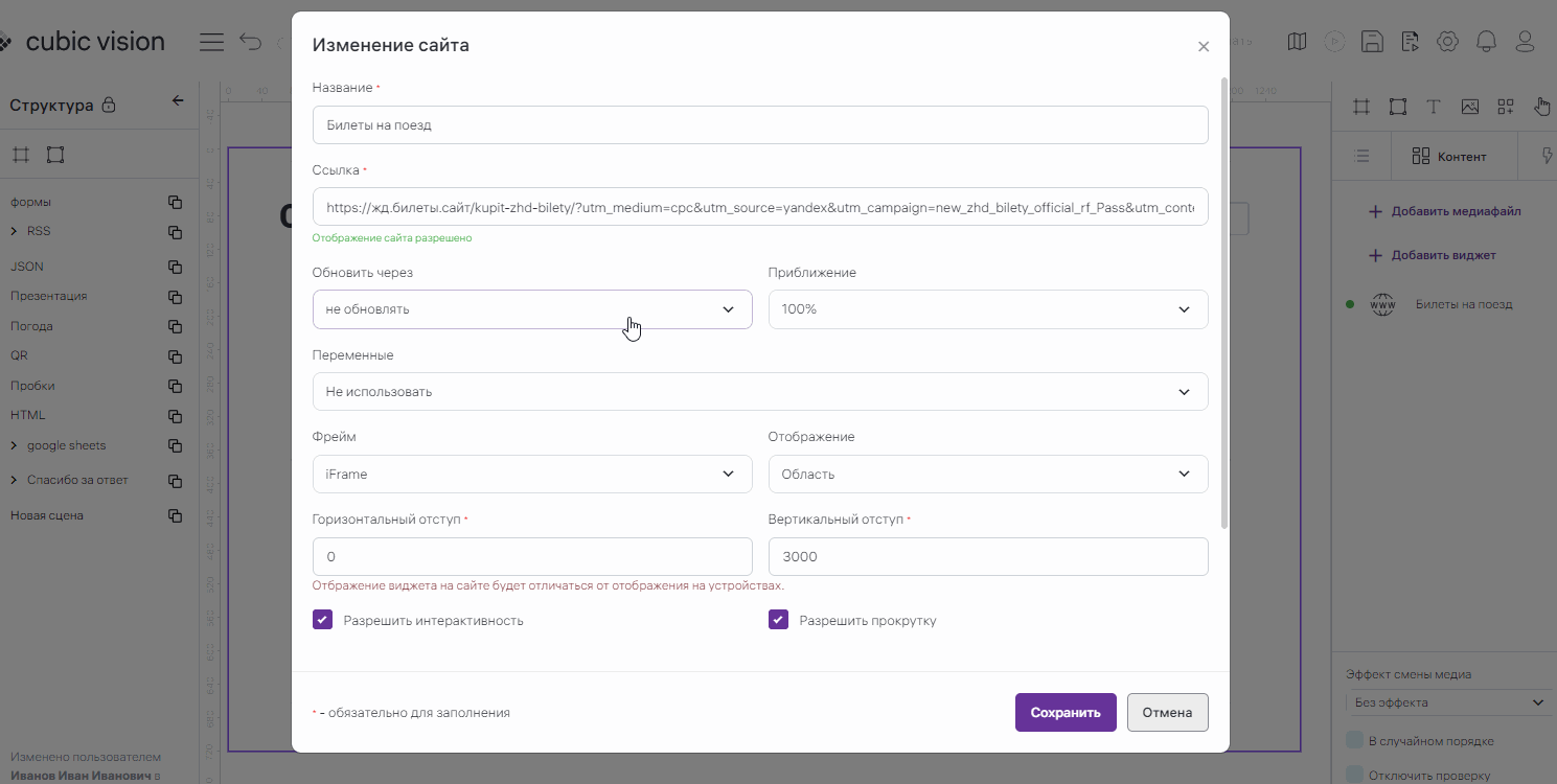 • Чекбокс «Разрешить интерактивность»;