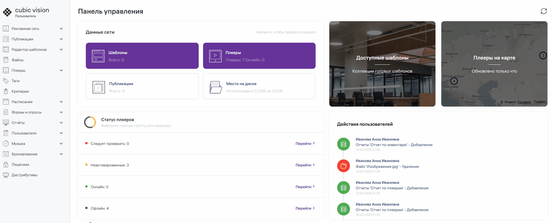 Подробнее о параметрах каждого отчета смотрите в описании выбранного отчета в разделе «[Отчеты](https://help-vision.cubicservice.ru/section/106-699)». Вы можете изменить тип отчета в подписке, в этом случае изменятся параметры отчета. Также вы должны учитывать, что если при выборе плеера указать пункт «Все плееры», то отчет будет формироваться для всех плееров, существующих на момент формирования отчета, а не на момент создания подписки. 3. В блоке «Дополнительные настройки» вы можете изменить периодичность формирования отчета. 4. В поле «Время формирования» укажите желаемое время для формирования отчета, автоматически выставлено время в 9:00 утра. 5. В поле «Дата начала» укажите желаемую дату начала действия подписки, автоматически выставлена текущая дата. Дата начала не может быть в прошлом, в таком случае подписку сохранить не получится. 6. Вы можете задать дату окончания подписки, для этого установите отметку в чекбоксе «Задать дату окончания». Если специально не задавать дату окончания, то подписка автоматически завершится через 10 лет. 7. Если чекбокс выше активирован, то вы можете указать дату окончания подписки. 8. В поле «Получатели» вы должны отметить пользователей, которые будут получать на электронную почту ссылку на сформированный отчет. После выбора появятся дополнительные поля для каждого выбранного пользователя, где вы можете увидеть, на какую электронную почту будет направлена ссылка на отчет. При желании вы можете указать дополнительную почту для каждого выбранного пользователя при помощи кнопки ![](attachments/image_3.jpg) или удалить при помощи кнопки ![](attachments/image_4.jpg). Чтобы удалить пользователя из подписки нажмите на кнопку ![](attachments/image_5.jpg). 9. Для сохранения подписки нажмите на кнопку ![](attachments/image_6.jpg) вверху страницы. ![](attachments/image_9.gif)