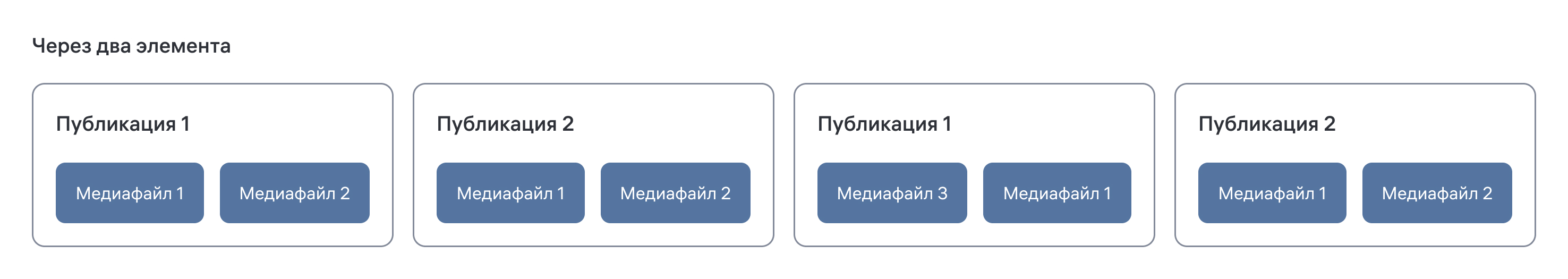 Изображение 12. Порядок воспроизведения элементов при отсутствии отметки в чекбоксе «Не прерывать публикацию» у Публикации 1 и настройки Публикации 2 — «Интервал выхода - через 2 элемента»