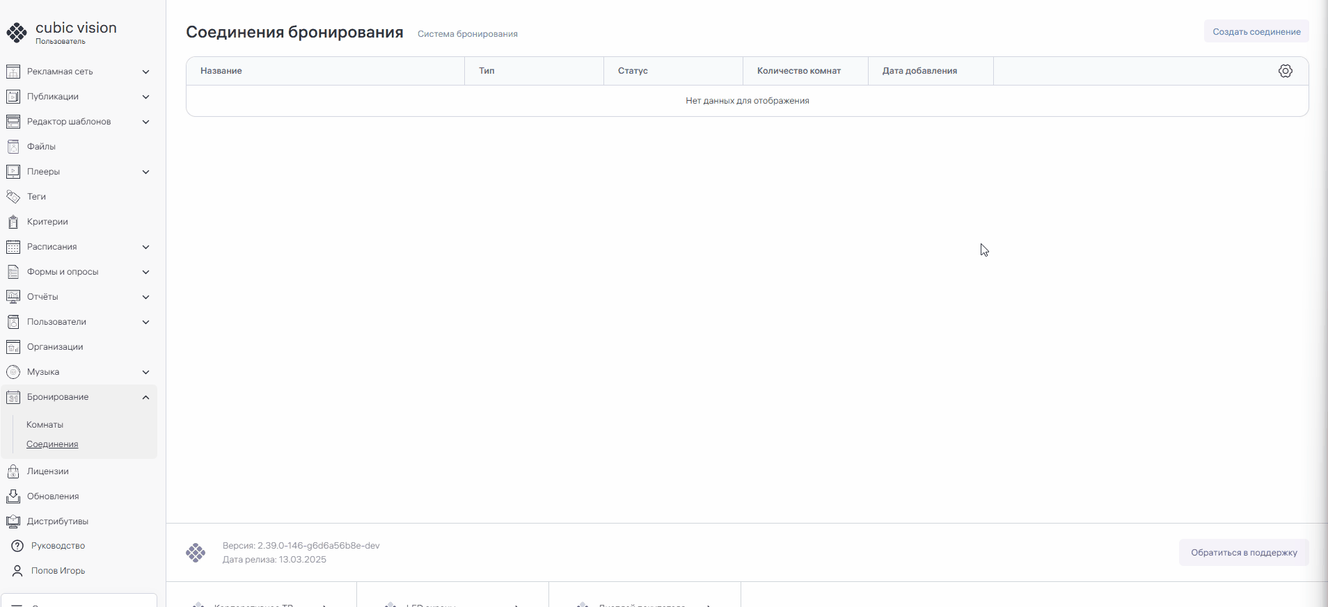 Для создания соединения в этой системе календарей в разделе «[Соединения](https://help-vision.cubicservice.ru/article/106-2453)» нажмите на кнопку «Создать соединение» и выберите пункт Microsoft 365